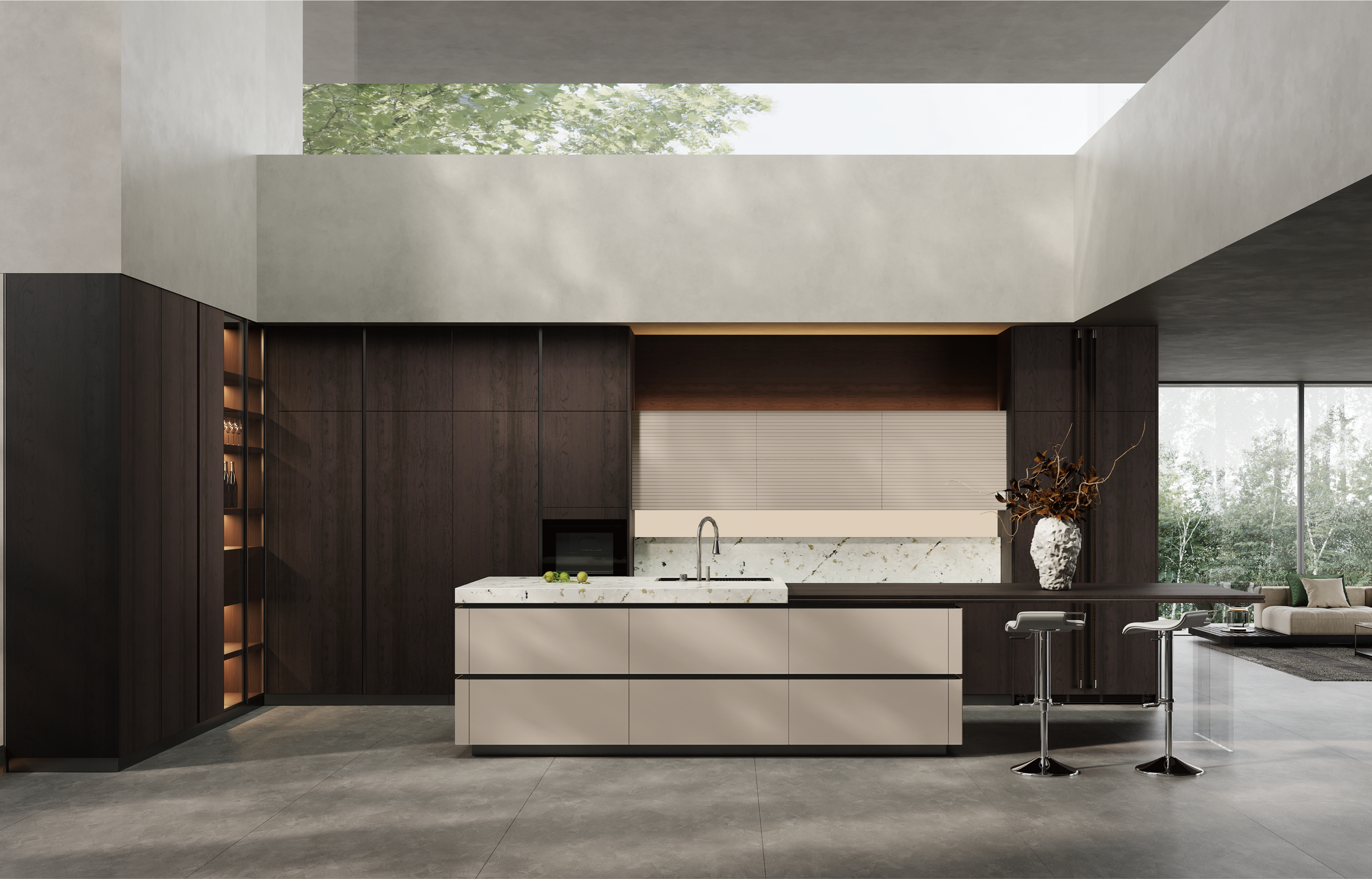通过金沙城厨柜量体裁柜,定制出适合主厨下厨的烹饪区和洗涤区的舒适高度。
